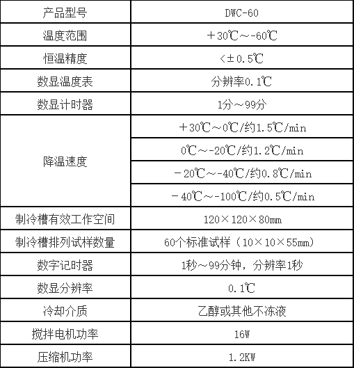 DWC-60/-60℃沖擊試樣低溫槽產(chǎn)品技術(shù)參數(shù):