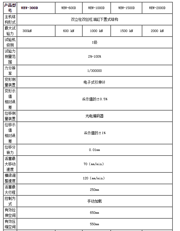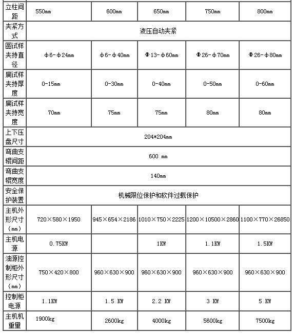 本機由四立柱雙絲杠油缸下置式高強度主機及琴式油源控制柜組成,油泵采用意大利馬祖奇進口低噪音高性能齒輪泵。拉伸空間位于主機上方,壓縮、彎曲試驗位于主機下方即中橫梁和工作臺之間。試驗空間的調(diào)整通過移動中橫梁來實現(xiàn),中橫梁升降采用鏈條傳動。手動調(diào)整送油閥進油量來實現(xiàn)材料的拉伸、壓縮、彎曲等試驗。試驗結束后自動采取材料的FM、REH、REL、RPO.2、RP1、RM和彈性模量E等實驗結果。